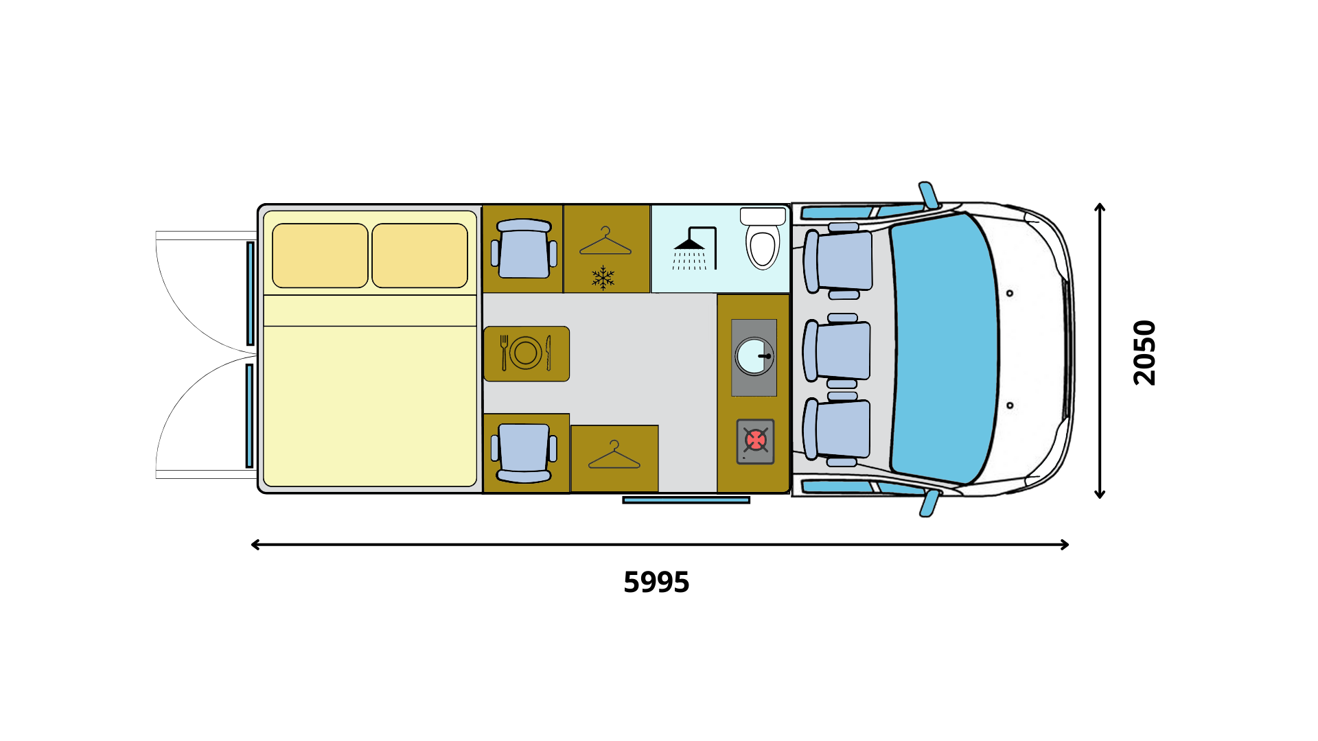 Nuestra camperización estándar ha sido cuidadosamente diseñada, estudiada y optimizada, tras numerosas horas de trabajo y pruebas previas, para garantizar la mejor distribución y aprovechamiento del espacio, así como para ser
