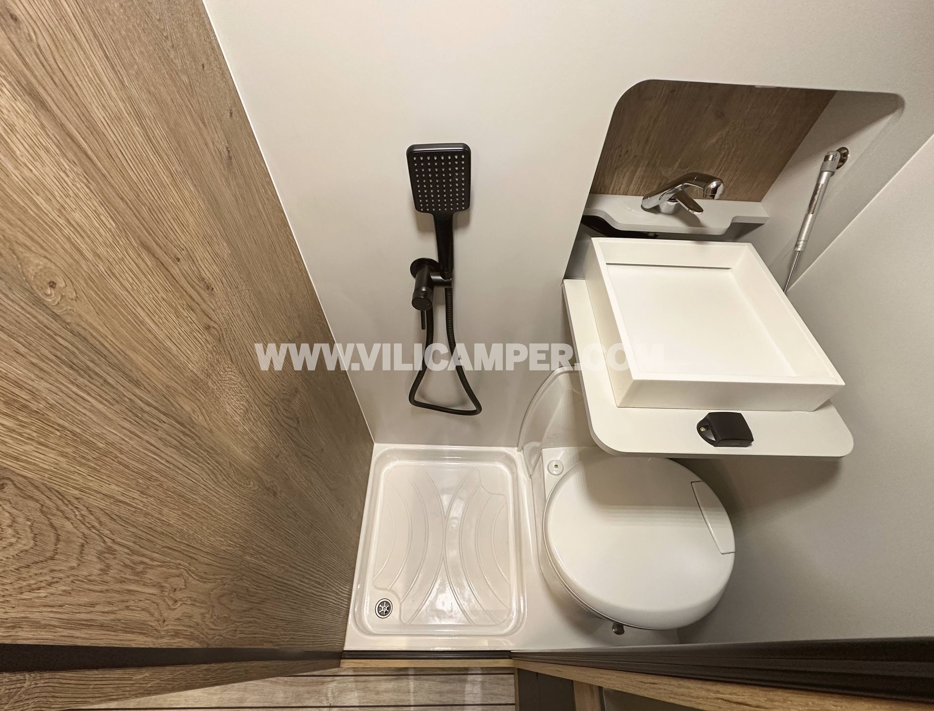 - Posibilidad de añadir extras: Además de nuestra camperización estándar, puedes añadir accesorios y mejoras. Te decimos los más comunes: Toldo, mosquitera en la puerta corredera, aire acondicionado, ventanas adicionales, batería de litio, booster, ducha exterior, escalón eléctrico, luz exterior, mueble de baño, cierres de seguridad, entre otros. Consulta los precios de cada uno.