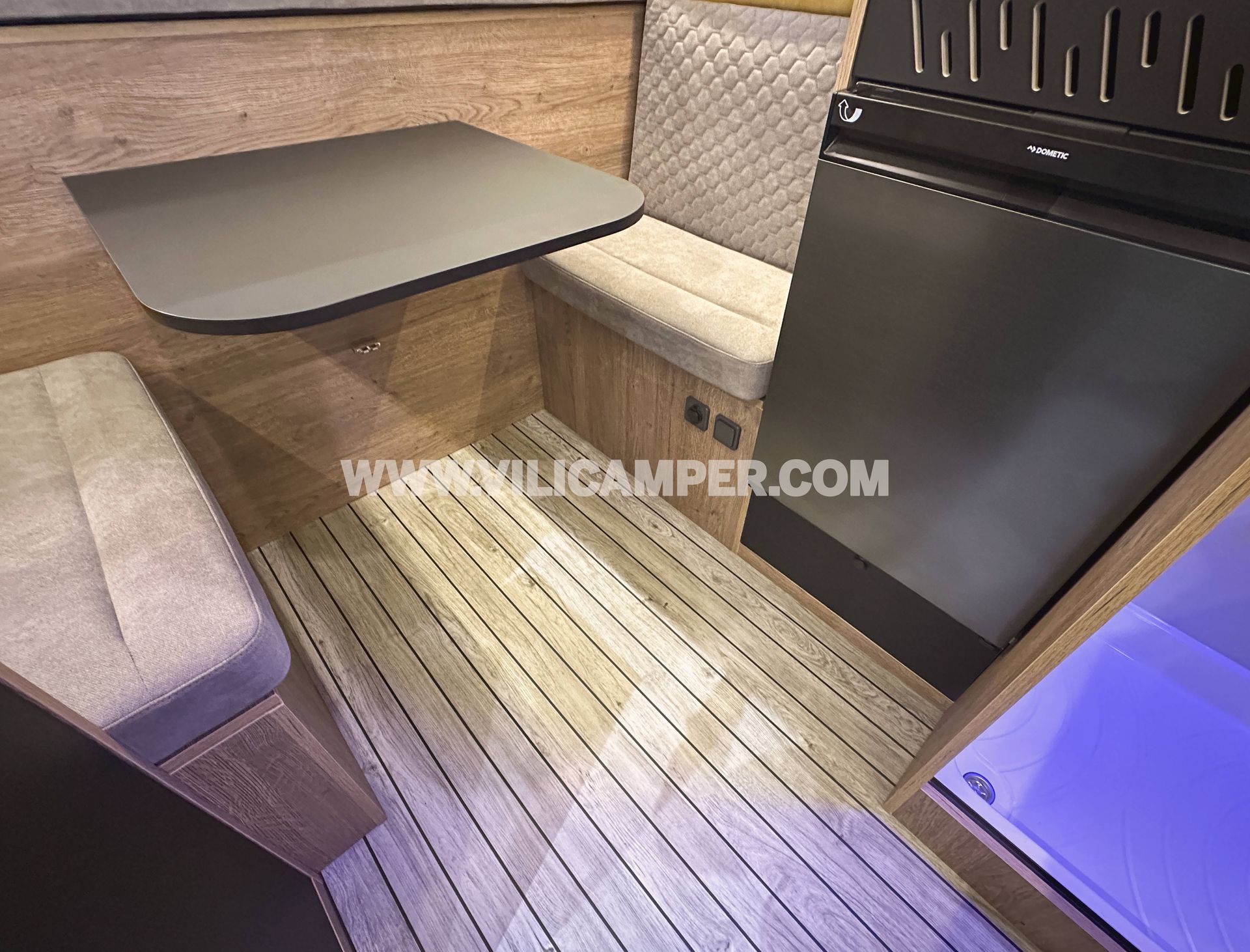 - Personalización de acabados sin coste adicional: Ofrecemos la opción de elegir los colores del suelo, maderas, tiradores y grifería para que puedas personalizar la camperización a tu gusto.