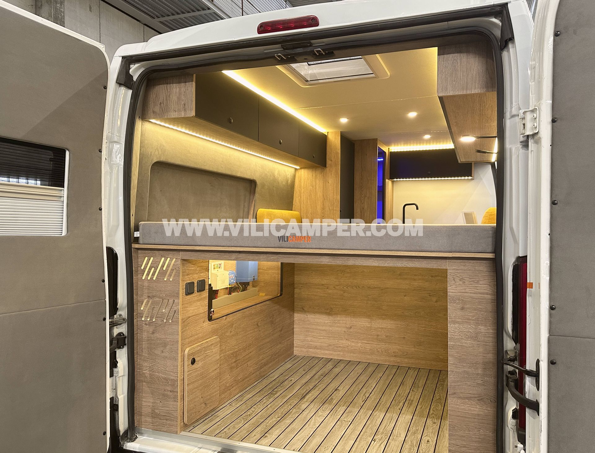Timanfaya nace para quienes sienten la llamada de los paisajes duros y la libertad absoluta. Esta camperización estándar se fabrica sobre los chasis más camperizados del mercado: Fiat Ducato, Peugeot Boxer y Citroën Jumper en versión L3H2, ofreciendo un equilibrio perfecto entre espacio interior, maniobrabilidad y confort en ruta. Proximamente también disponible en L2H2 para quienes buscan un tamaño más compacto sin renunciar a un equipamiento premium. Con baño independiente, autonomía eléctrica y un diseño robusto y elegante, Timanfaya está lista para acompañarte en grandes rutas, costa o montaña. Siempre con el sello de calidad Vilicamper.