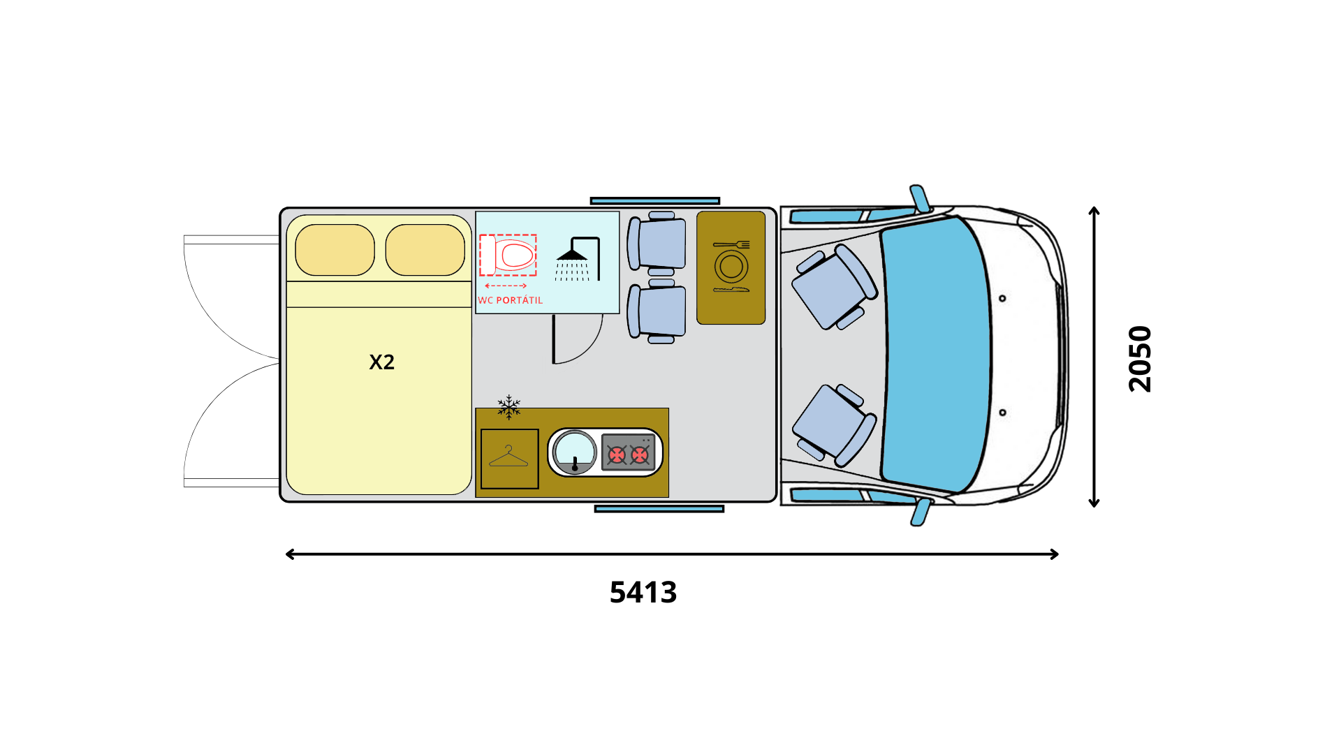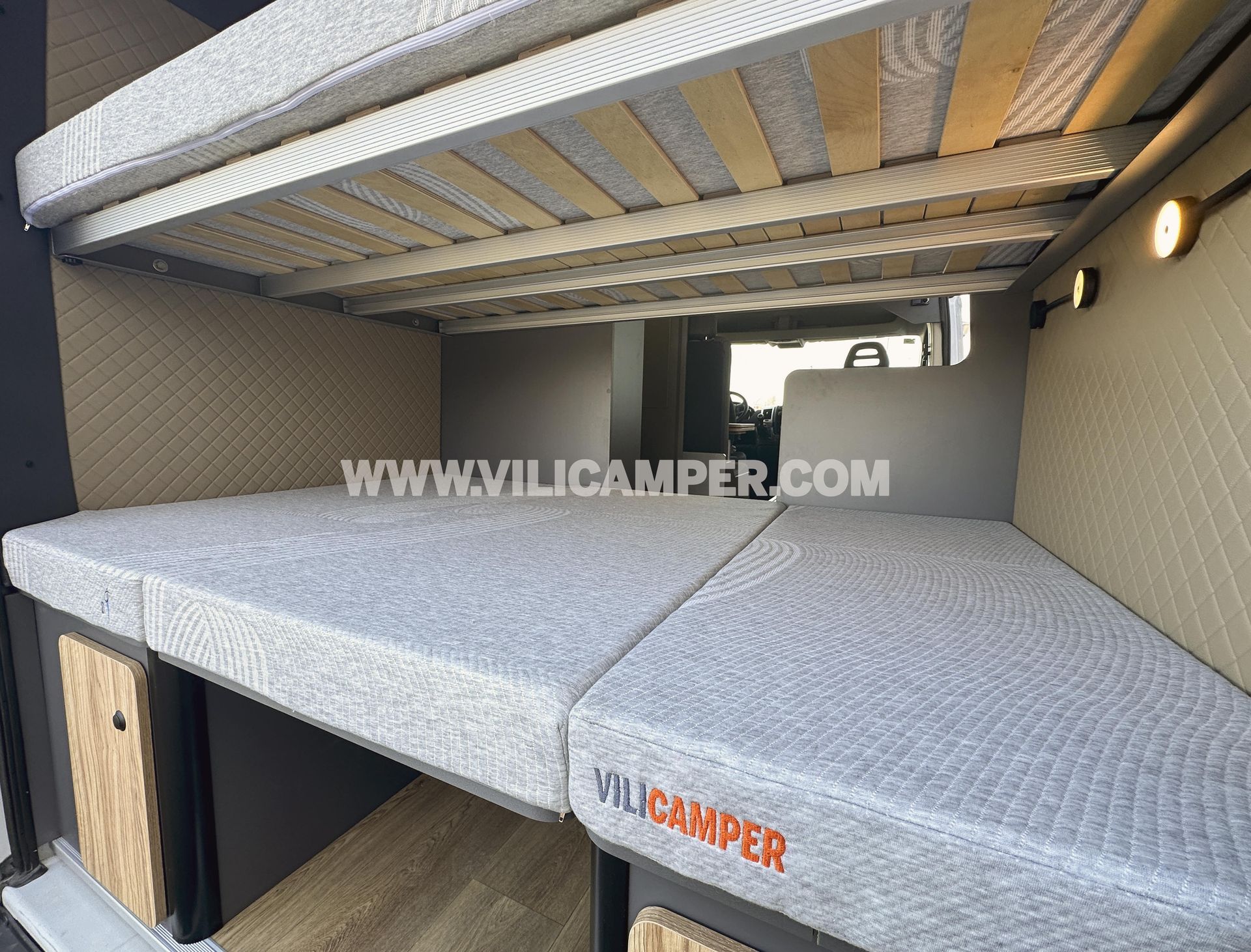 Nuestra camperización estándar ha sido cuidadosamente diseñada, estudiada y optimizada, tras numerosas horas de trabajo y pruebas previas, para garantizar la mejor distribución y aprovechamiento del espacio, así como para ser