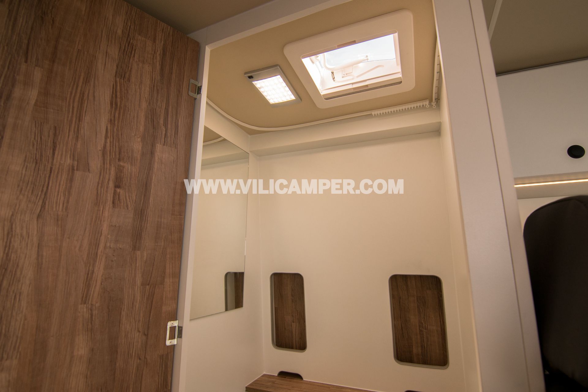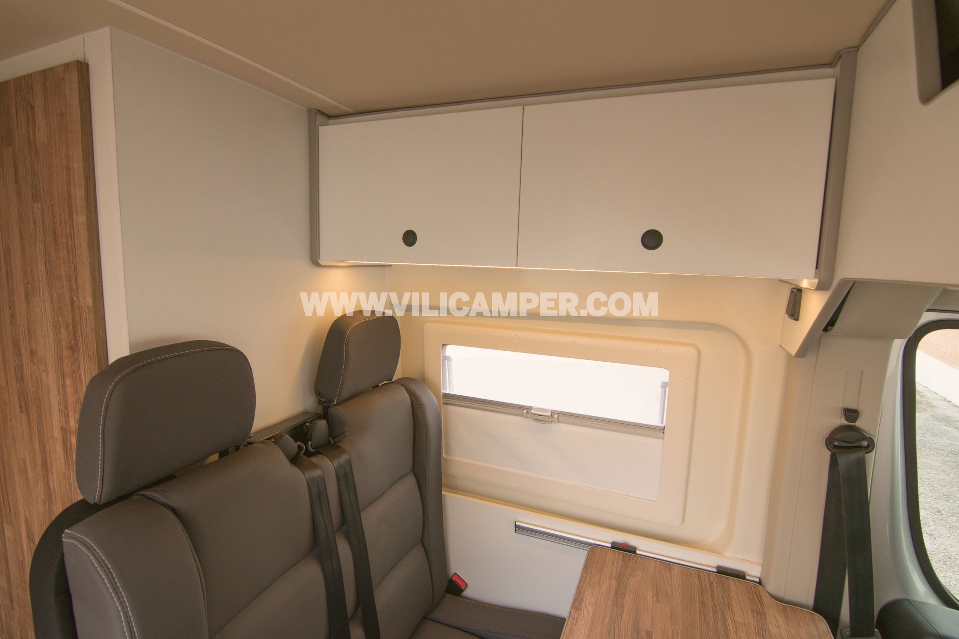 - Distribución inteligente del espacio: Diseñamos cuidadosamente la distribución del interior para crear áreas funcionales y versátiles. Esto incluye un área de descanso cómoda y acogedora, un espacio de cocina bien equipado, una cabina de baño grande e independiente y un área de estar flexible con asientos giratorios que permiten aprovechar el espacio al máximo y crear un área de estar de mayor amplitud. Reconocemos la importancia de contar con suficiente espacio de almacenamiento. Por eso, diseñamos armarios y compartimentos estratégicamente ubicados para guardar tus pertenencias, equipos de viaje y suministros, manteniendo así el espacio ordenado y libre de desorden.
