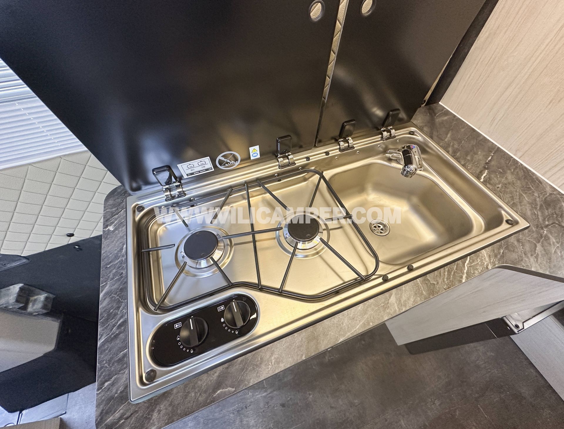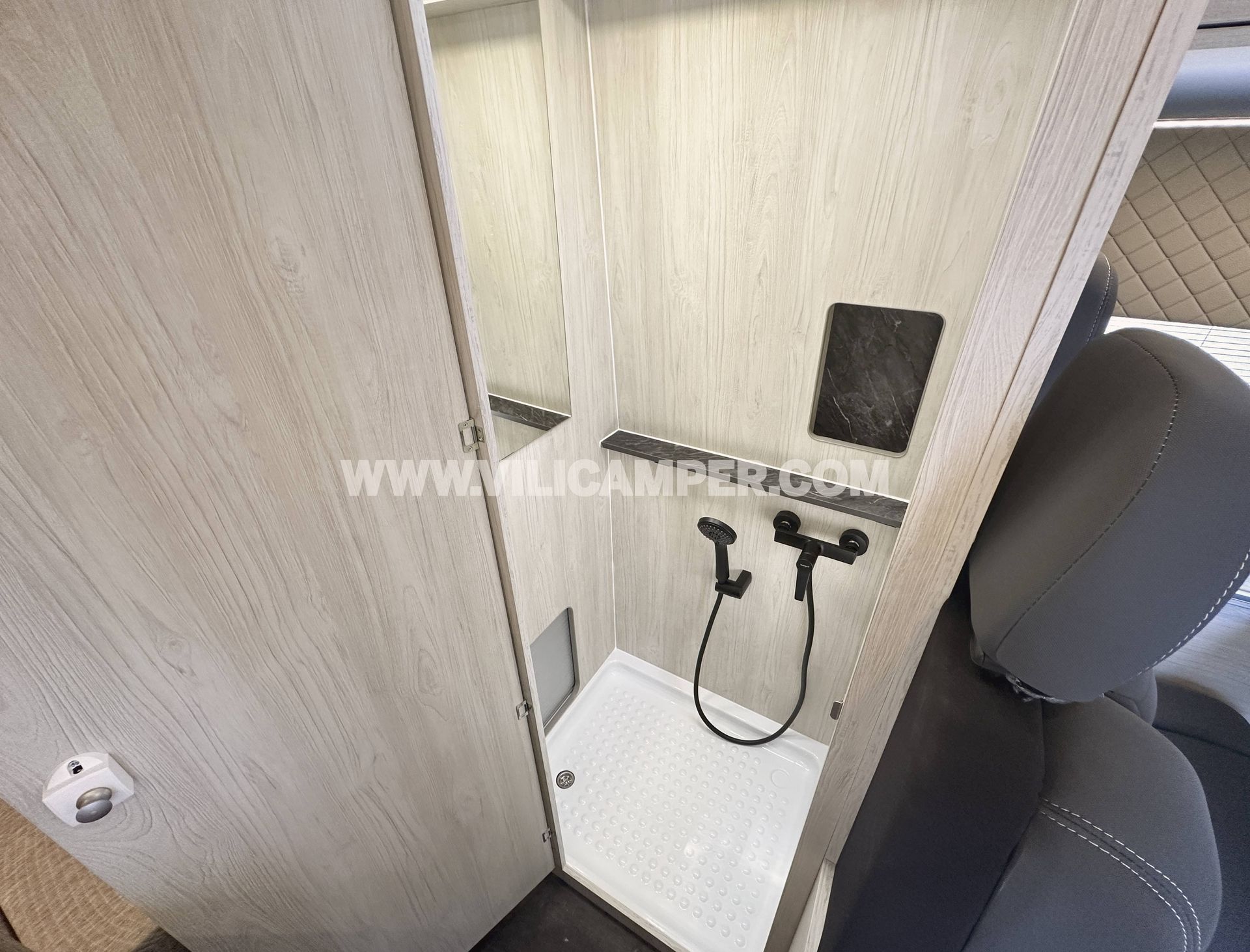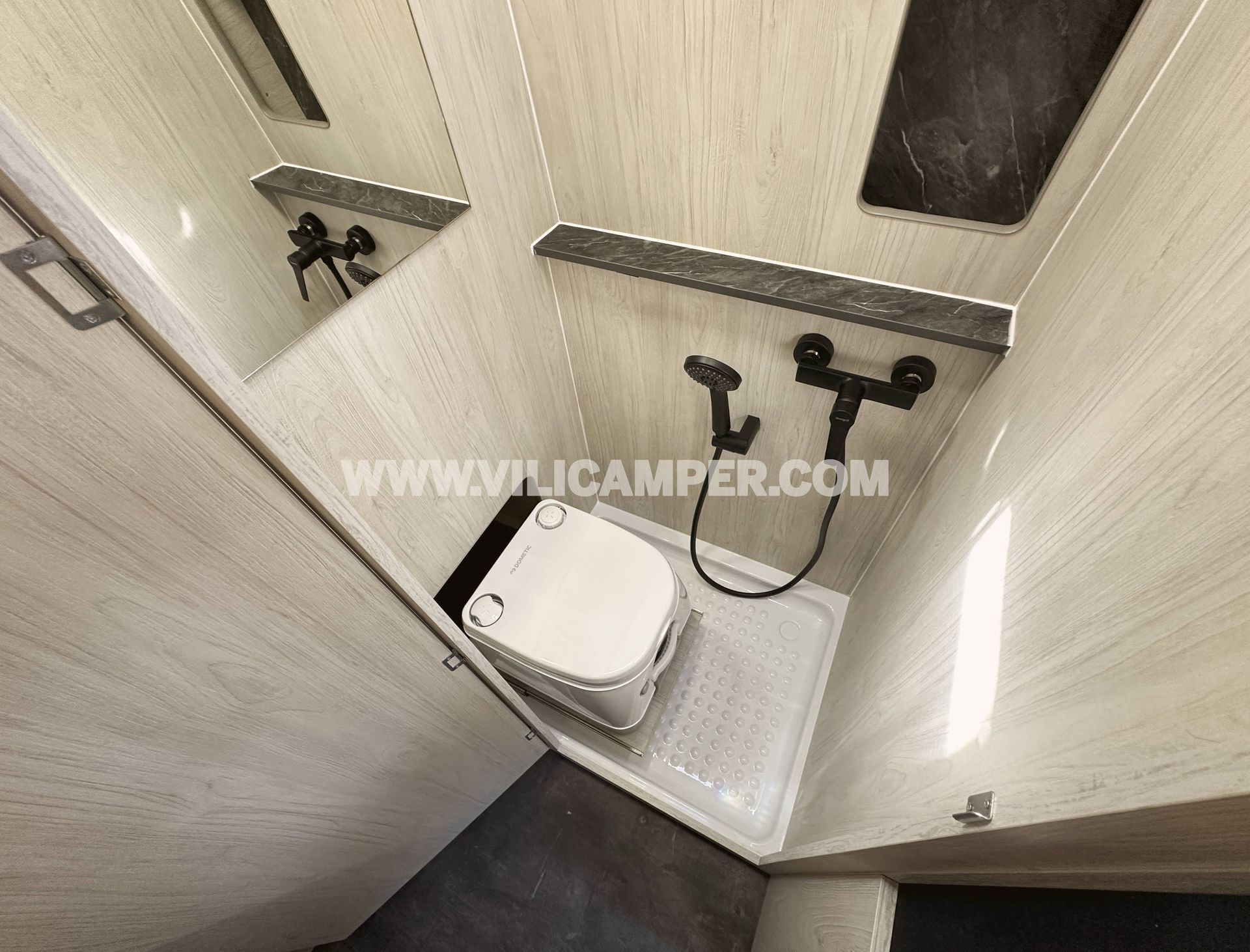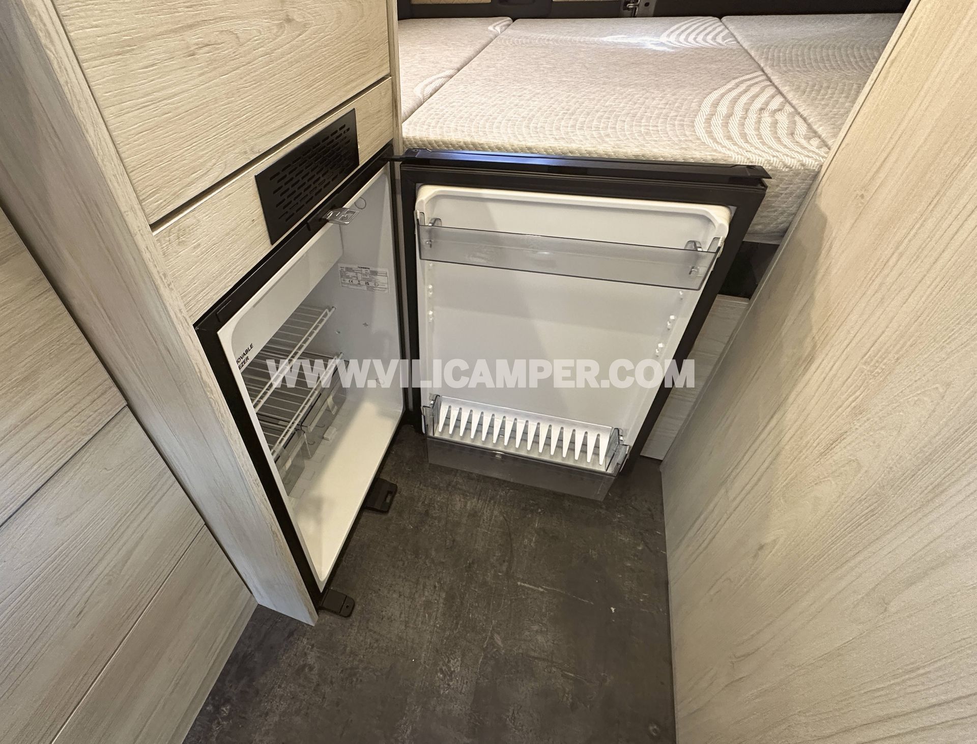Se ha instalado un módulo combinado de cocina y fregadero Dometic M09722R, integrado en el mobiliario. Además, incorpora una nevera de compresor Dometic NRX80C, eficiente y de gran capacidad, perfecta para conservar alimentos y bebidas durante largos viajes.