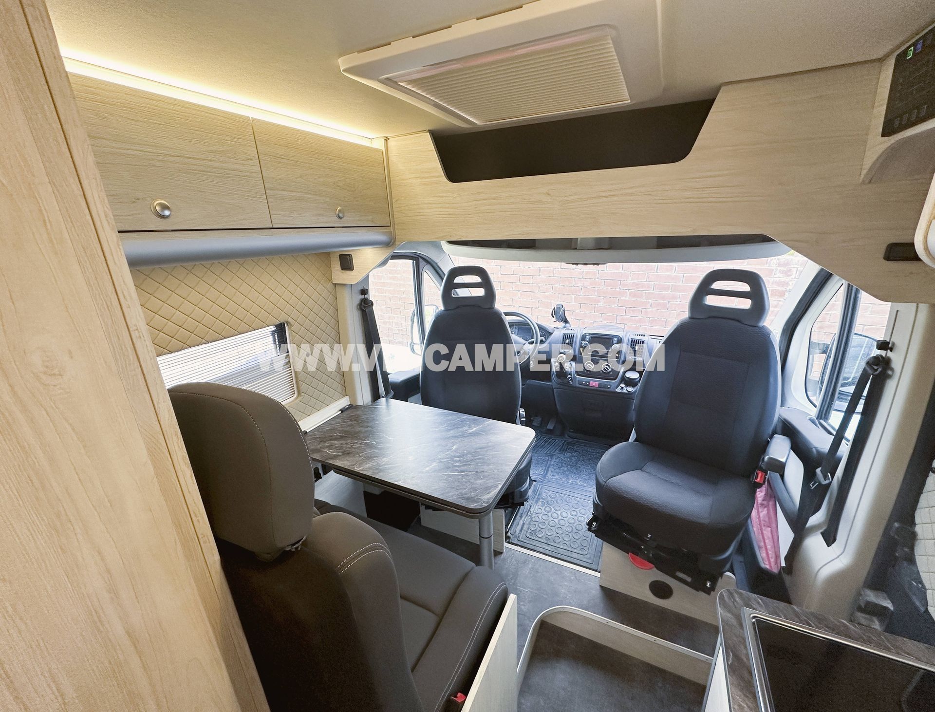 En ruta, el vehículo dispone de dos asientos delanteros con bases giratorias y dos asientos traseros fijos, todos homologados y con cinturones de seguridad.