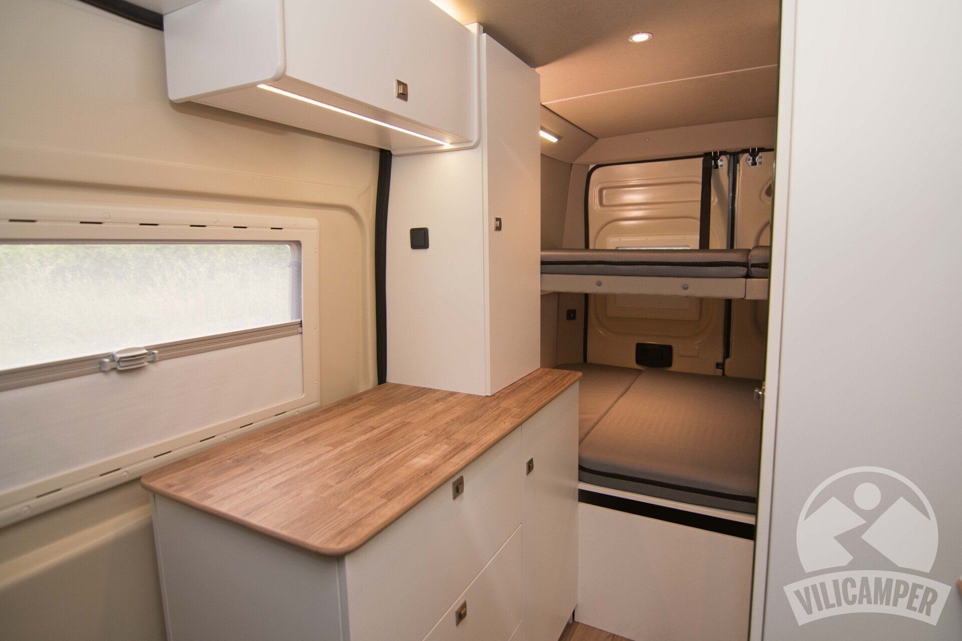 Camperización Completa para 3 Plazas con Baño y Cama Abatible Eléctrica