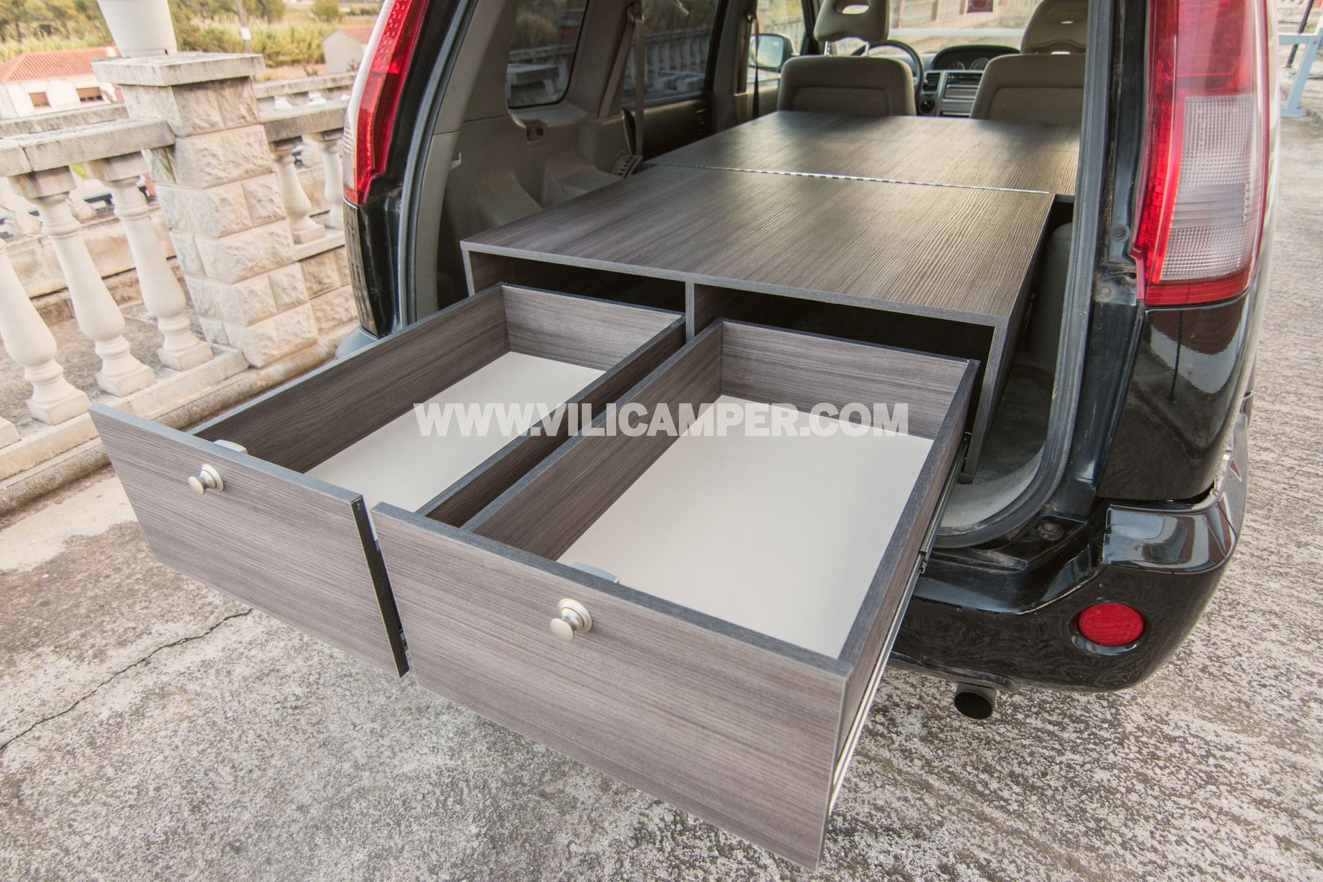 Transforma tu Nissan X-Trail en la máxima plataforma de aventuras con nuestro innovador Kit de Camper. Fabricado con contrachapado HPL ligero y de alta calidad, este kit te permite convertir tu vehículo en una cómoda cama, perfecta para descansar durante tus escapadas. Con un diseño meticuloso, el kit incluye dos grandes cajones integrados para un almacenamiento eficiente y organizado. Experimenta la libertad de explorar nuevos terrenos y campamentos sin comprometer la comodidad ni la funcionalidad. Este kit es la solución perfecta para los amantes de la aventura que buscan llevar su Nissan X-Trail al siguiente nivel. ¡Prepárate para vivir experiencias únicas con nuestro Kit de Conversión de Expedición Versátil!