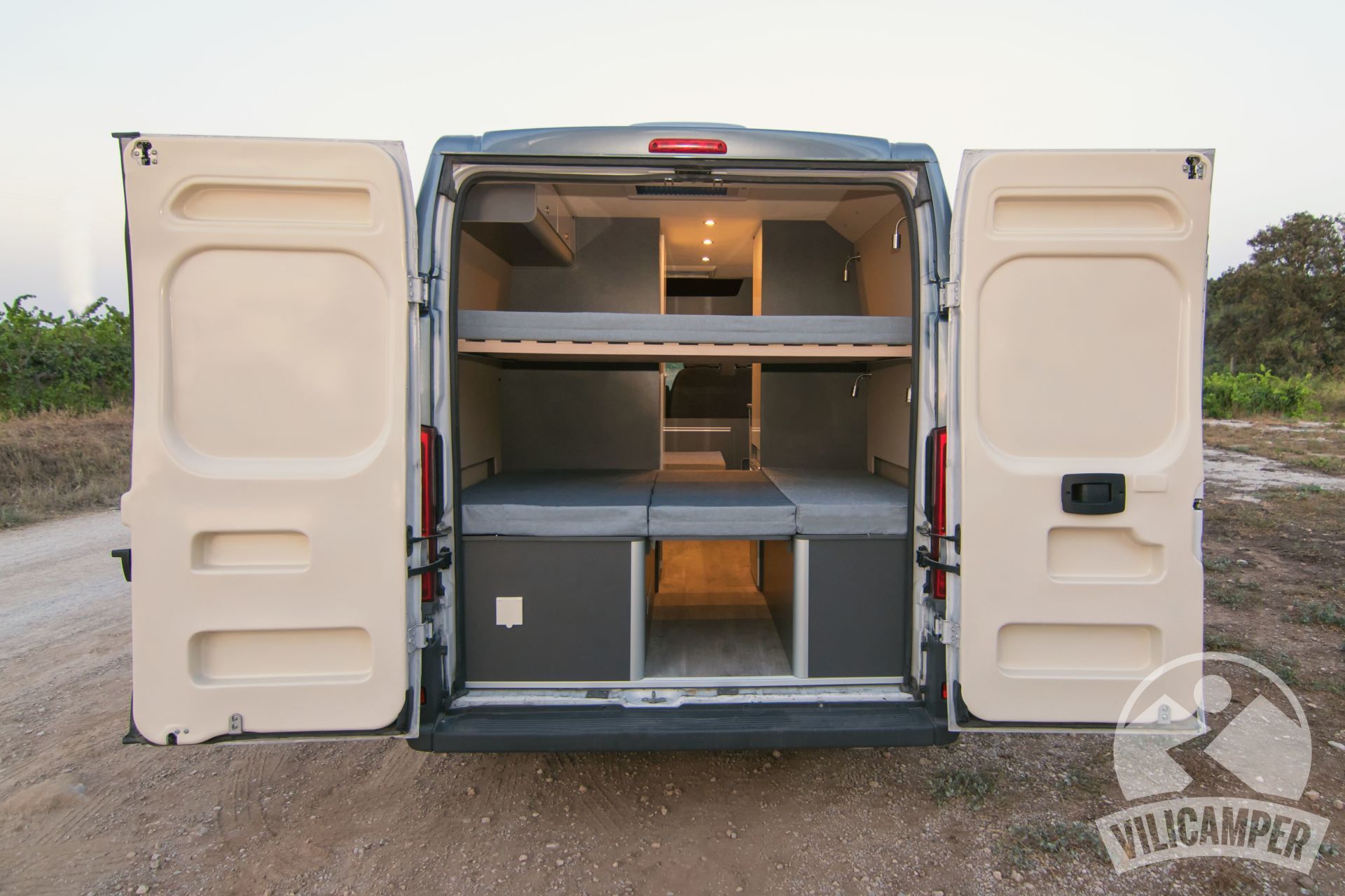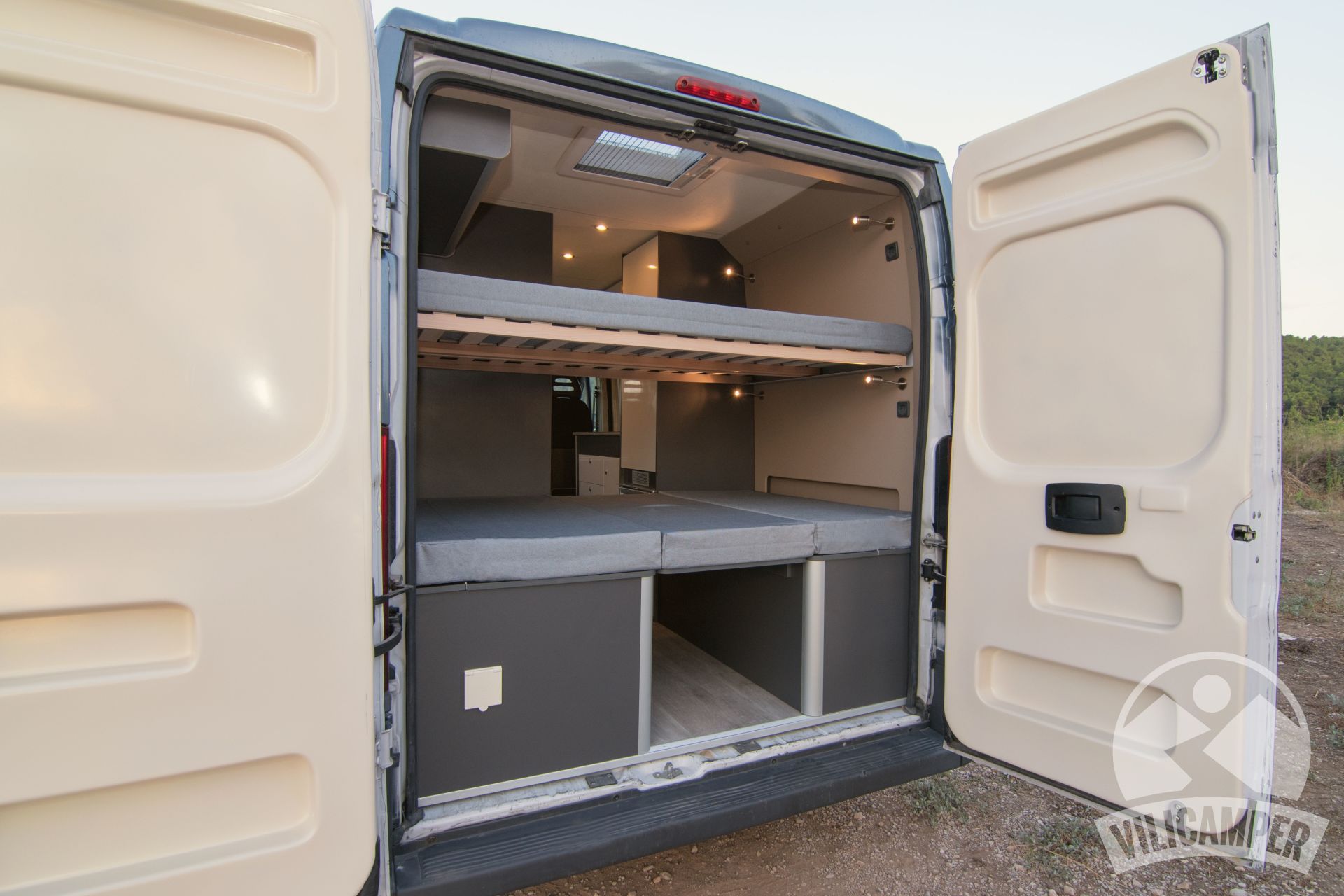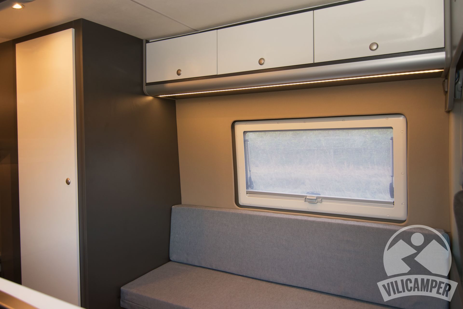 Ampliación con huecos tapizados en la litera inferior para ganar unos centímetros de más y que sea el descanso más confortable para personas altas o que les guste dormir estiradas.