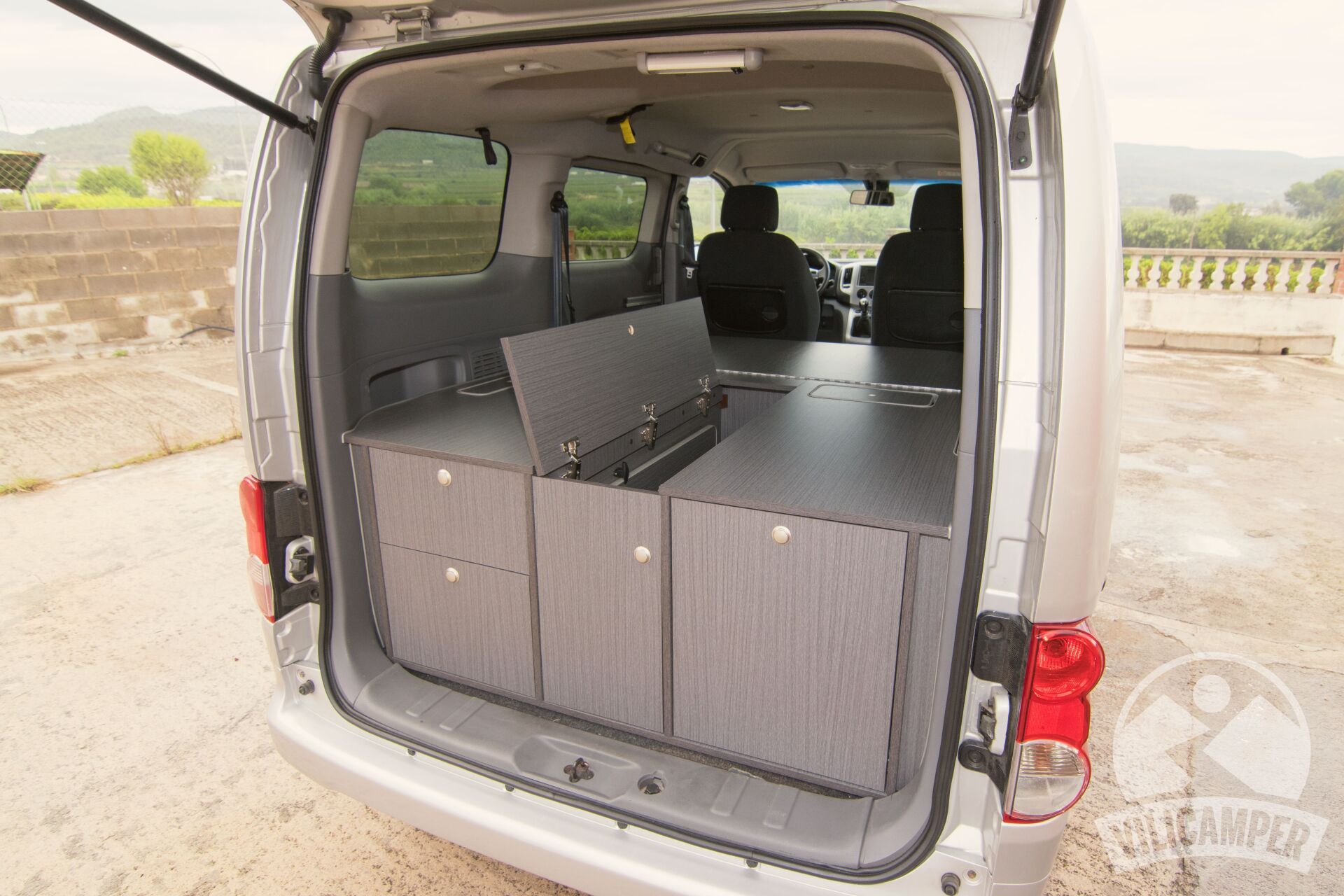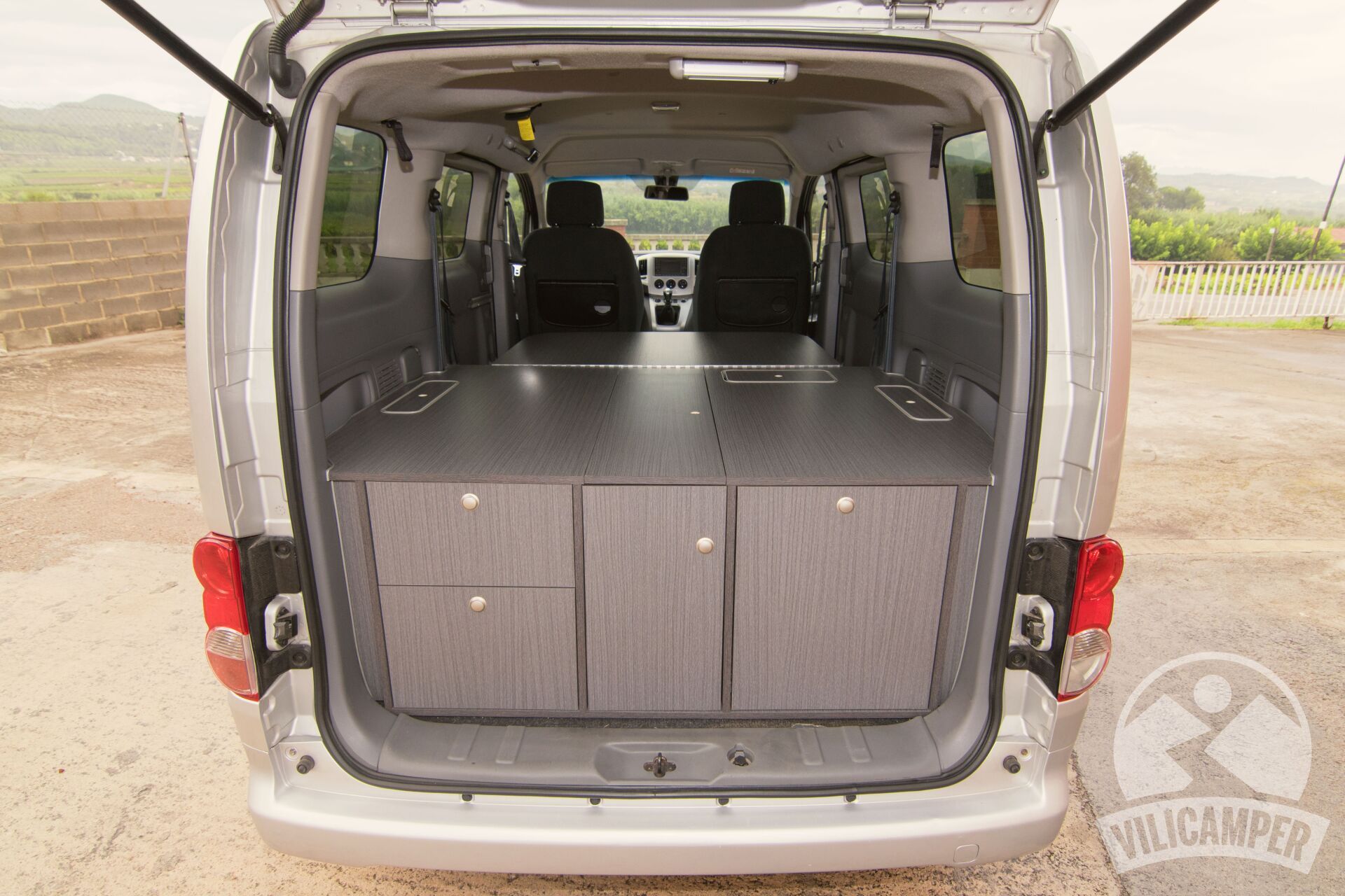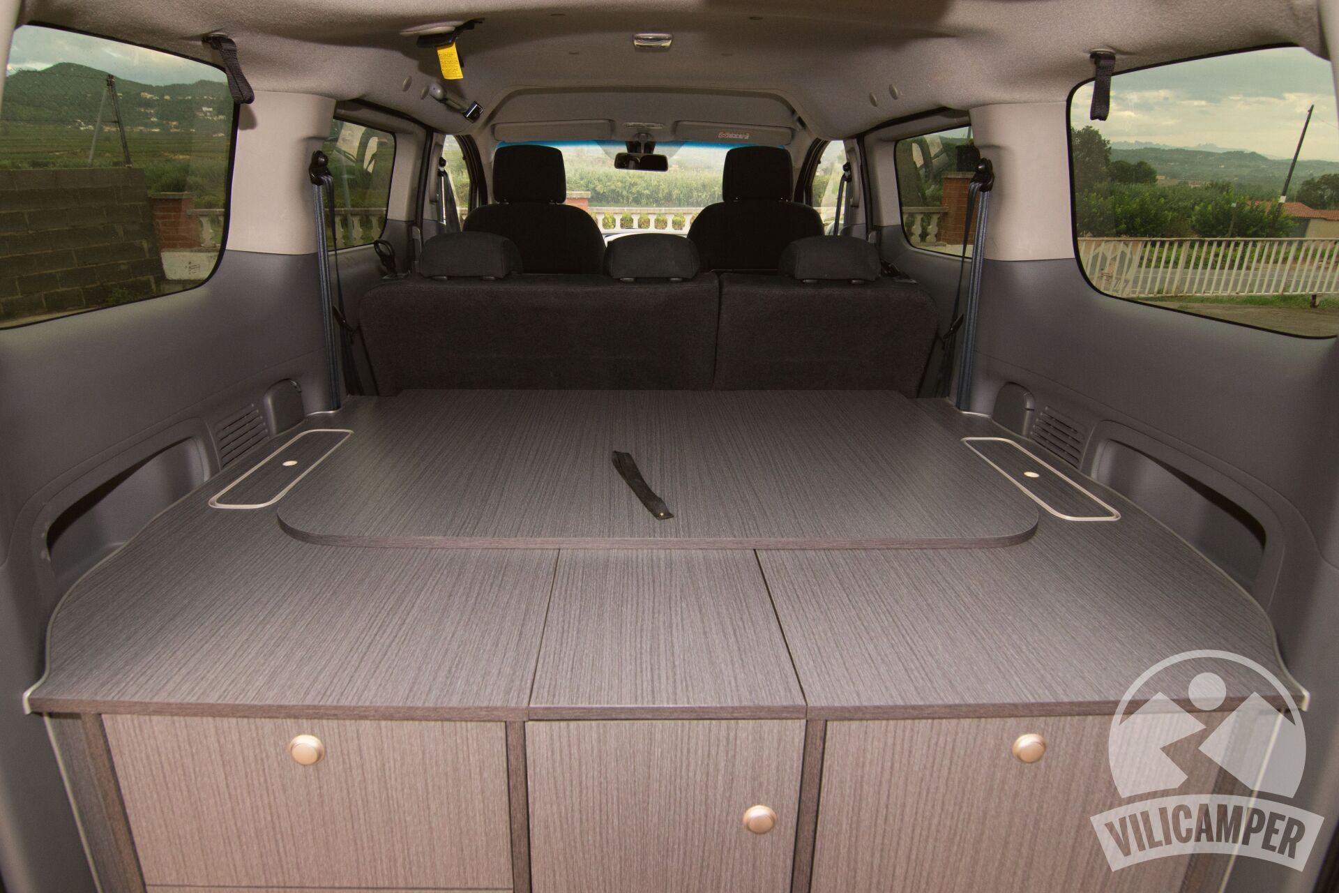 Eliminamos la última banqueta de asientos y dejamos de forma fija el mobiliario. Ajustado a los embellecedores interiores del vehículo para ampliar el espacio al máximo y tener mejores acabados.