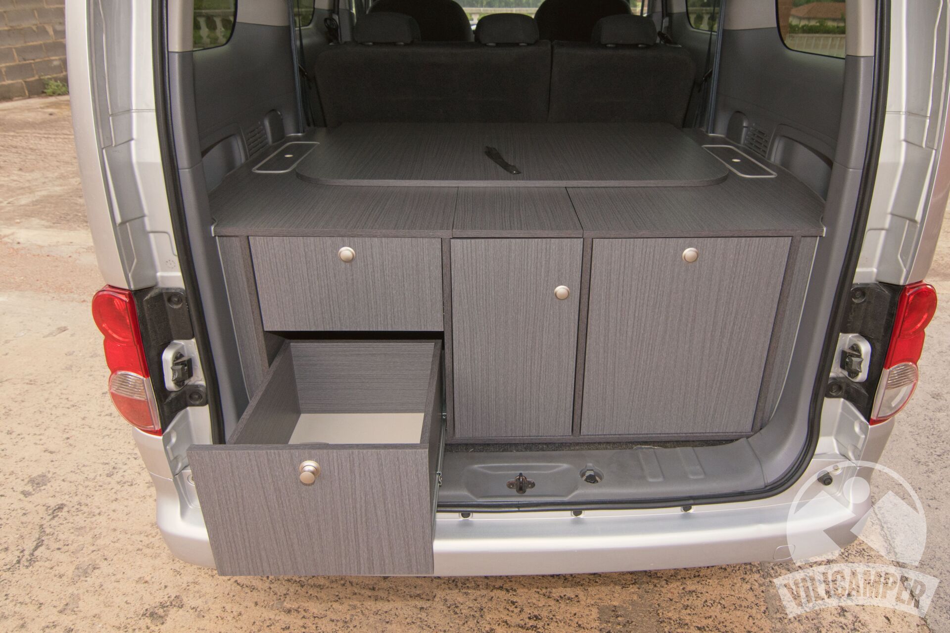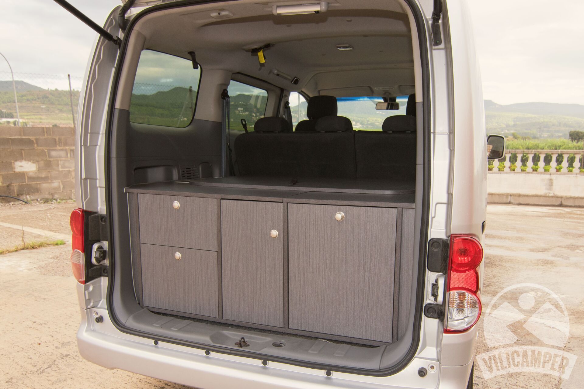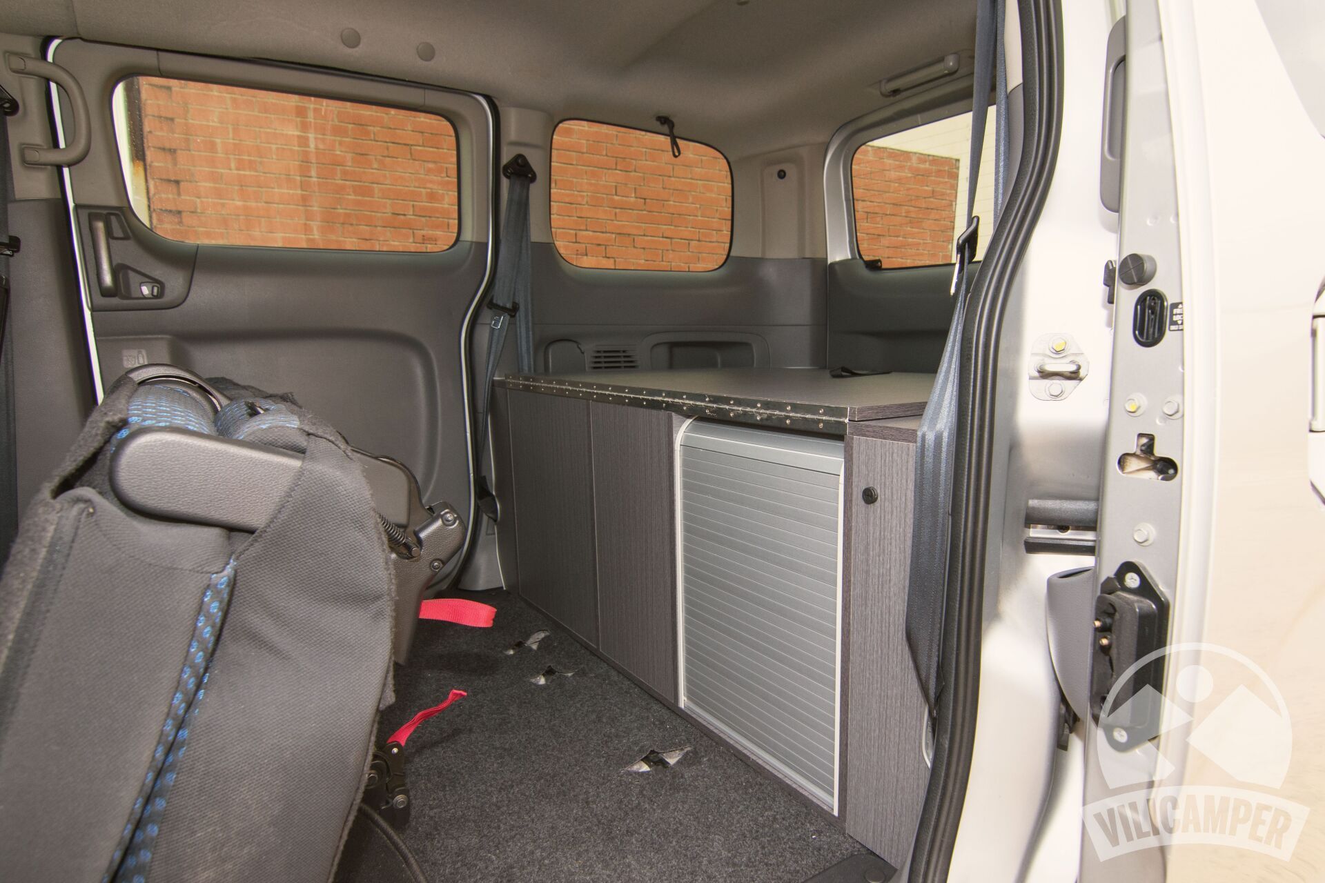 Eliminamos la última banqueta de asientos y dejamos de forma fija el mobiliario. Ajustado a los embellecedores interiores del vehículo para ampliar el espacio al máximo y tener mejores acabados.