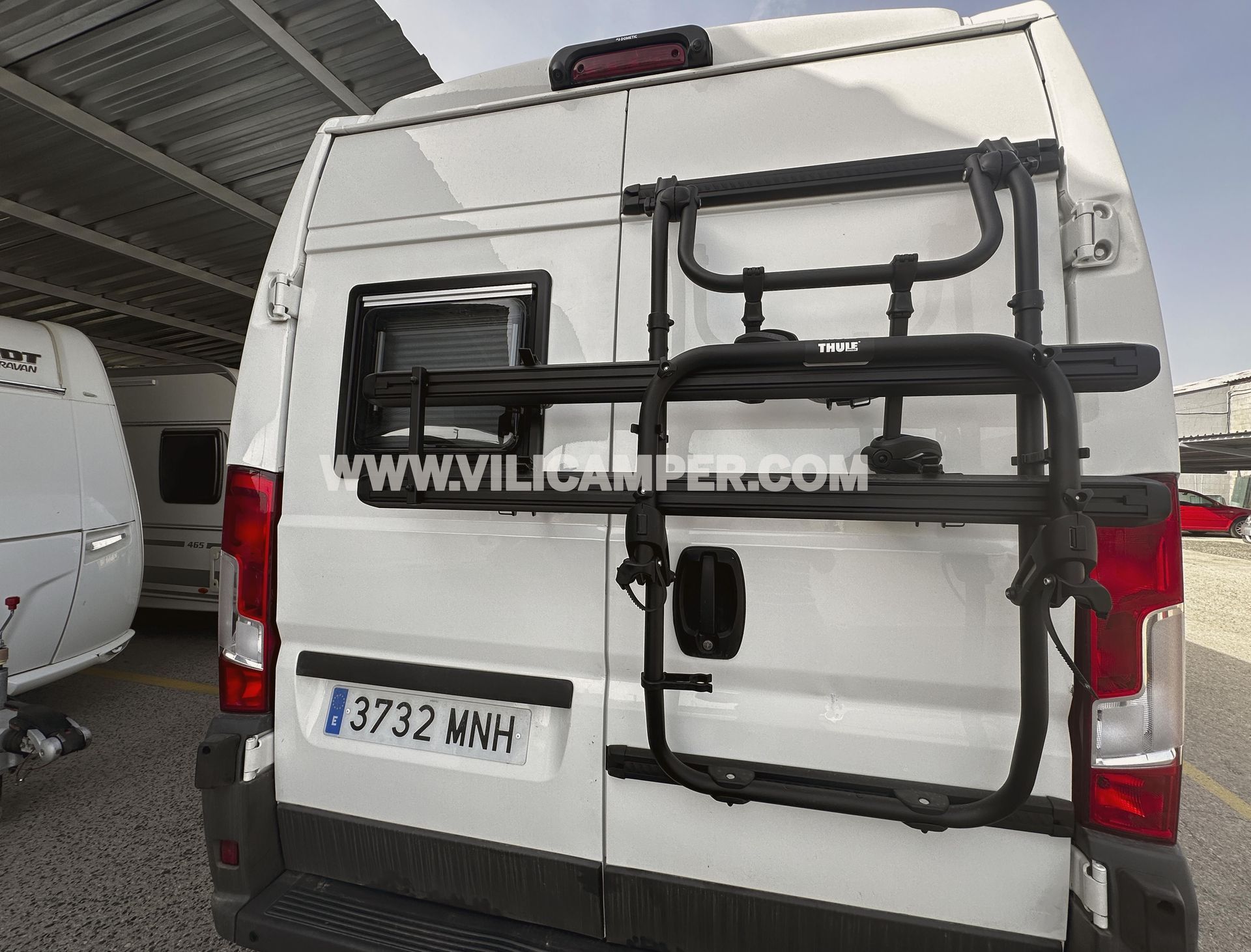 Ventilación y Luz Natural: Para optimizar la ventilación y la entrada de luz natural en la camper, hemos instalado una ventana 500 x450 mm en el portón trasero, una ventana 700x450 mm, en la puerta corredera y otra ventana 700x450 mm en el comedor. Todas estas ventanas están equipadas con mosquiteras y oscurecedores integrados, ofreciendo mayor comodidad y privacidad en todo momento. También hemos instalado 2 claraboyas Turbo Vent y una claraboya Dometic en el baño para mejorar la ventilación.