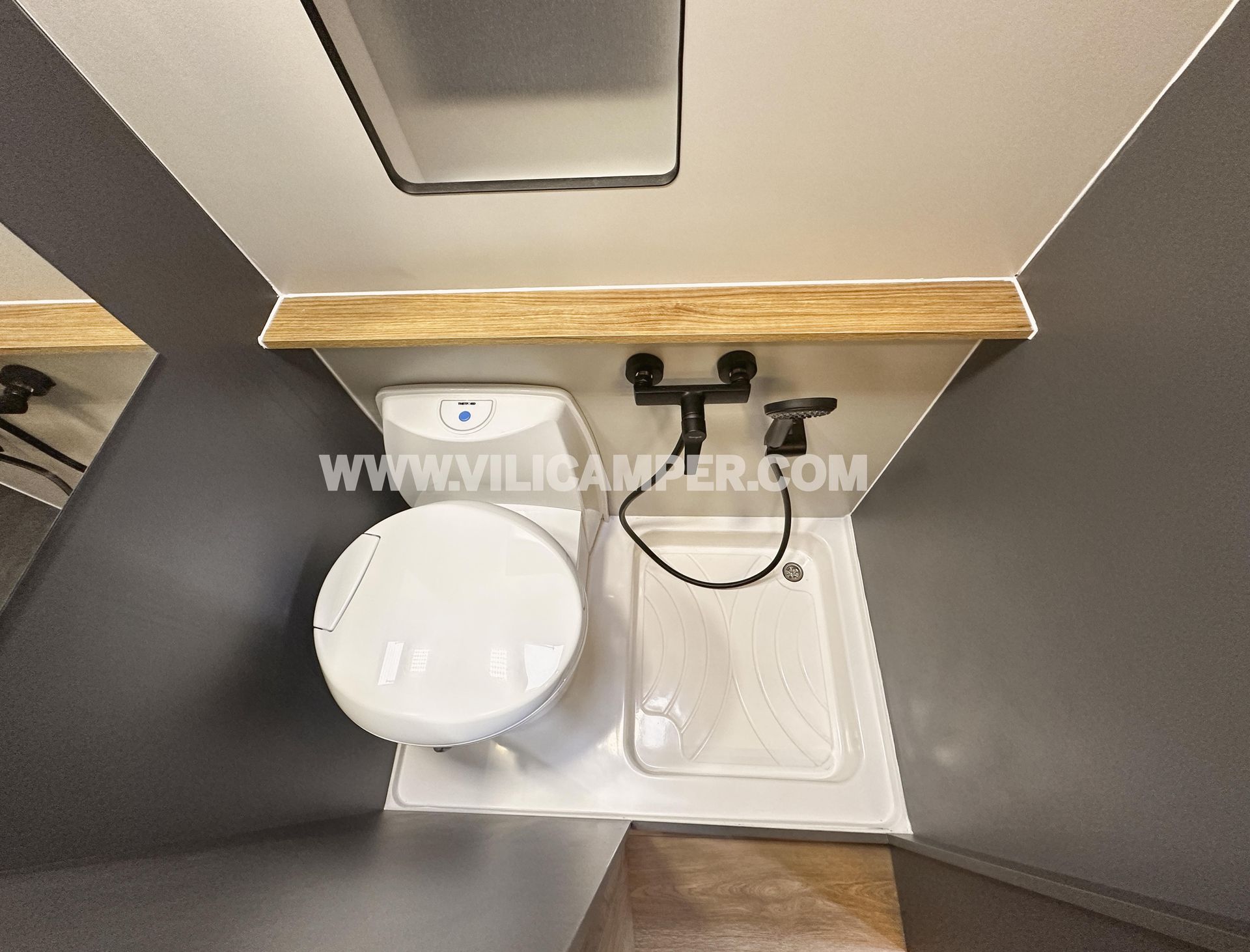 Baño Independiente: En nuestra configuración estándar, el baño incluye todo lo necesario para ofrecer una experiencia completa y funcional, manteniendo siempre la estética y el confort, cuenta con: Portón exterior para el cassette del WC para facilitar el vaciado sin comprometer el interior de la furgoneta, plato de ducha de alta calidad diseñado para ofrecer durabilidad, WC fijo Thetford C223 CS que proporciona un baño fijo cómodo y fácil de limpiar, espejo, riel de ducha y grifo de ducha con flexo y colgador que ofrecen una experiencia práctica y cómoda para tus necesidades de higiene.